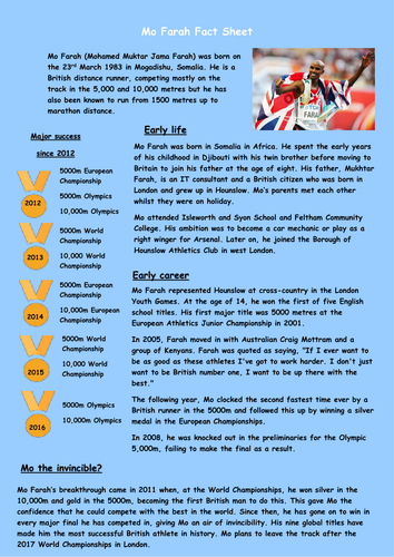 Mo Farah Reading Comprehension Teaching Resources